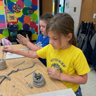 During the Fall 1 semester, Ms. Carrie and Ms. Amy led two Ceramics classes with Slowfire at Whittier Elementary, teaching Grades K-2 on Wednesdays and Grades 3-5 on Fridays.