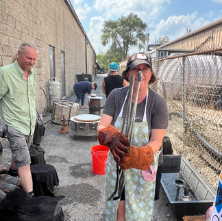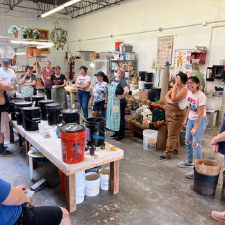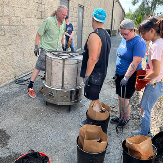 Our adult students, along with one adventurous teen (with a parent in tow), had an incredible outing at Chicago Kiln Service! Guided by kiln master and Raku expert Carl Mankert, and his colleague Tyler Yocum, a talented Slowfire teacher, we experienced the excitement and unpredictability of Raku firing firsthand. Many of our students made the trip in style, traveling in our studio van, Vincent Van-Go!